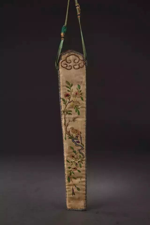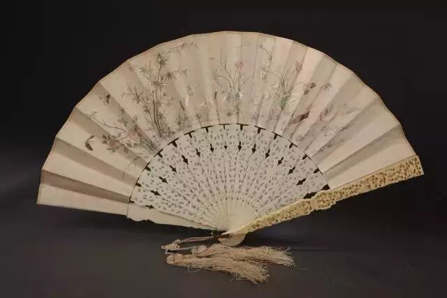 清 象牙雕扇骨双面广绣百鸟纹折扇